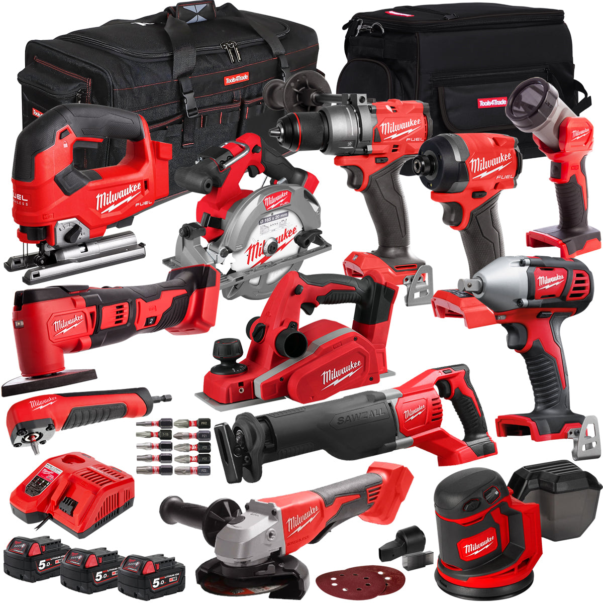 Milwaukee 18V 11 Piece Power Tool Kit with 3 x 5.0Ah Batteries T4TKITM-75