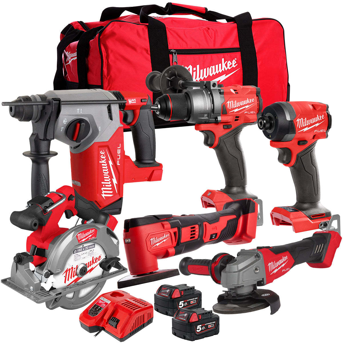 Milwaukee 18V 6 Piece Combo Kit with 2 x 5.0Ah Battery & Charger T4TKIT-32233