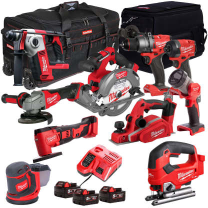 Milwaukee 18V Cordless 10 Piece Tool Kit with 3 x 5.0Ah Batteries & Charger in Bag T4TKIT-505