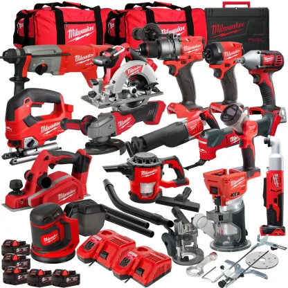 Milwaukee 18V Cordless 15 Piece Tool Kit with 5 x 5.0Ah Batteries & Charger in Bag T4TM-12