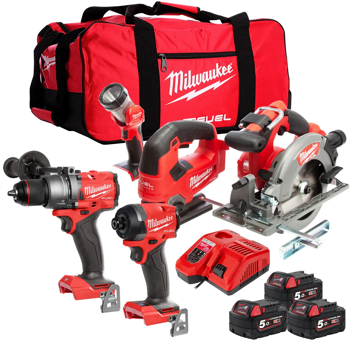 Milwaukee M18 FPP5L2-503B 18V Fuel 5 Piece Kit With 3 x 5.0Ah Batteries Charger In Bag 4933479904