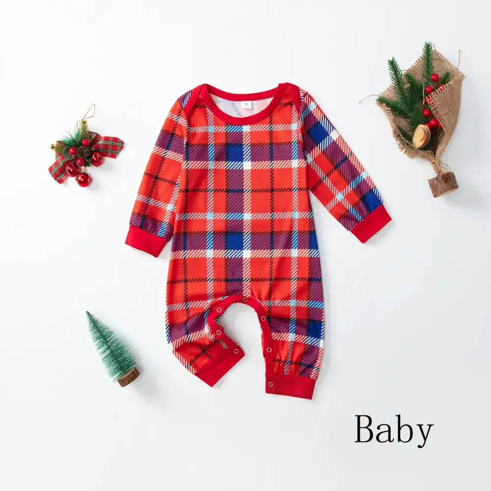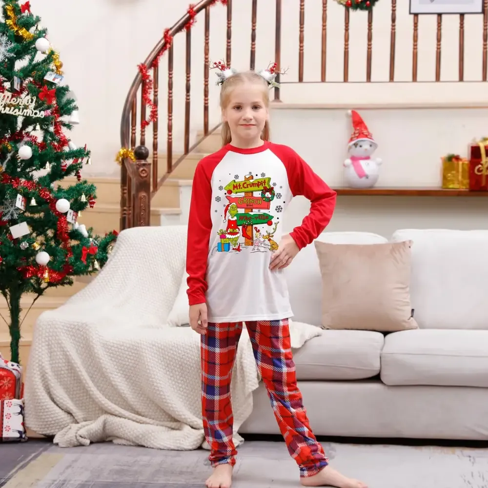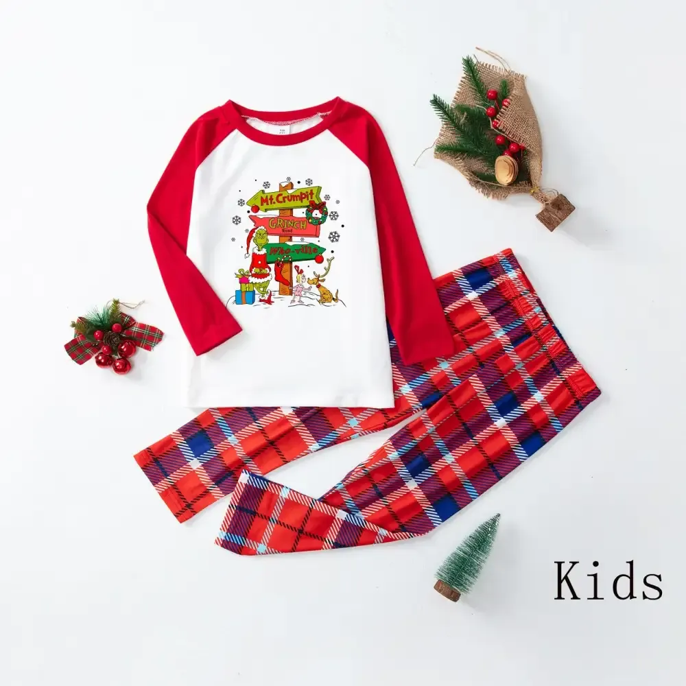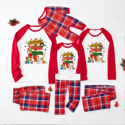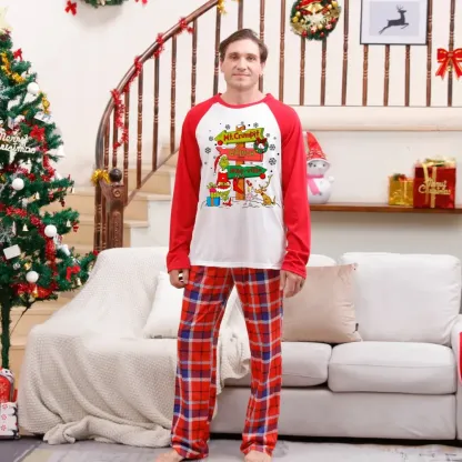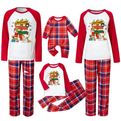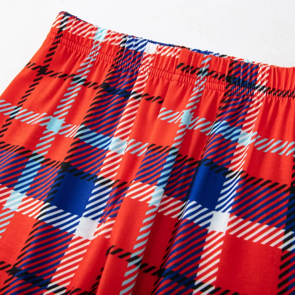 Christmas Plaid Cartoon Letter Print Red Pajama Set