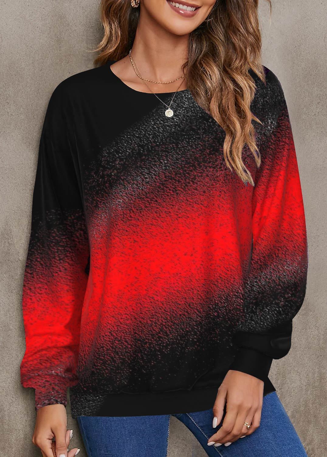 Ombre Navy Round Neck Long Sleeve Sweatshirt