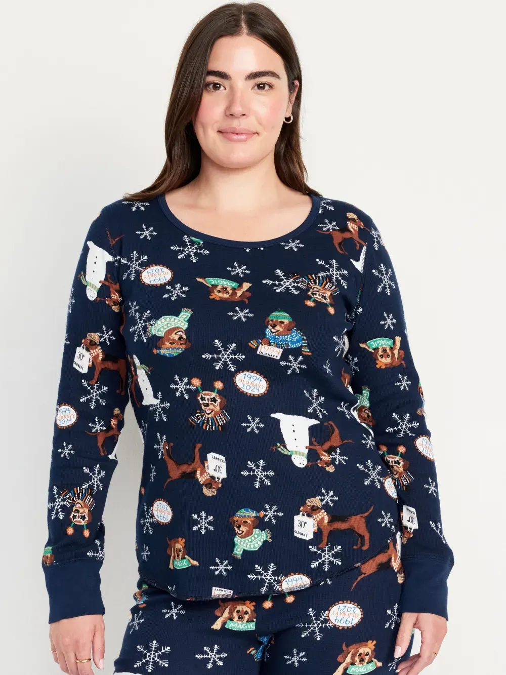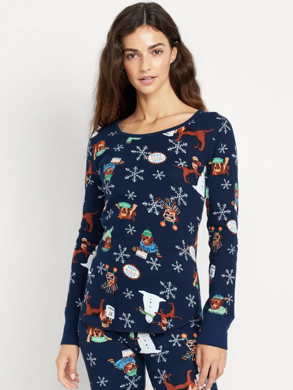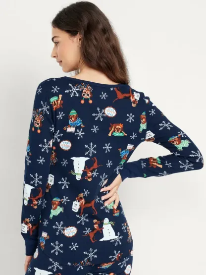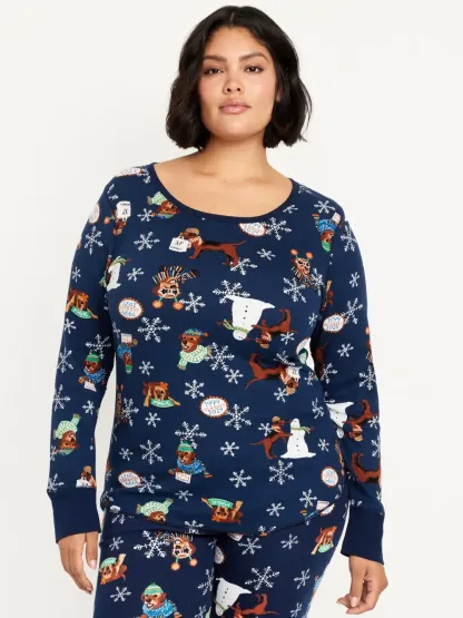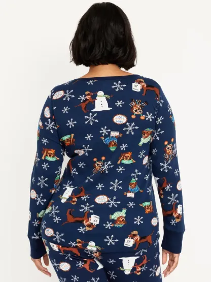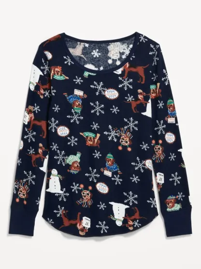 PRINTED WAFFLE PAJAMA TOP