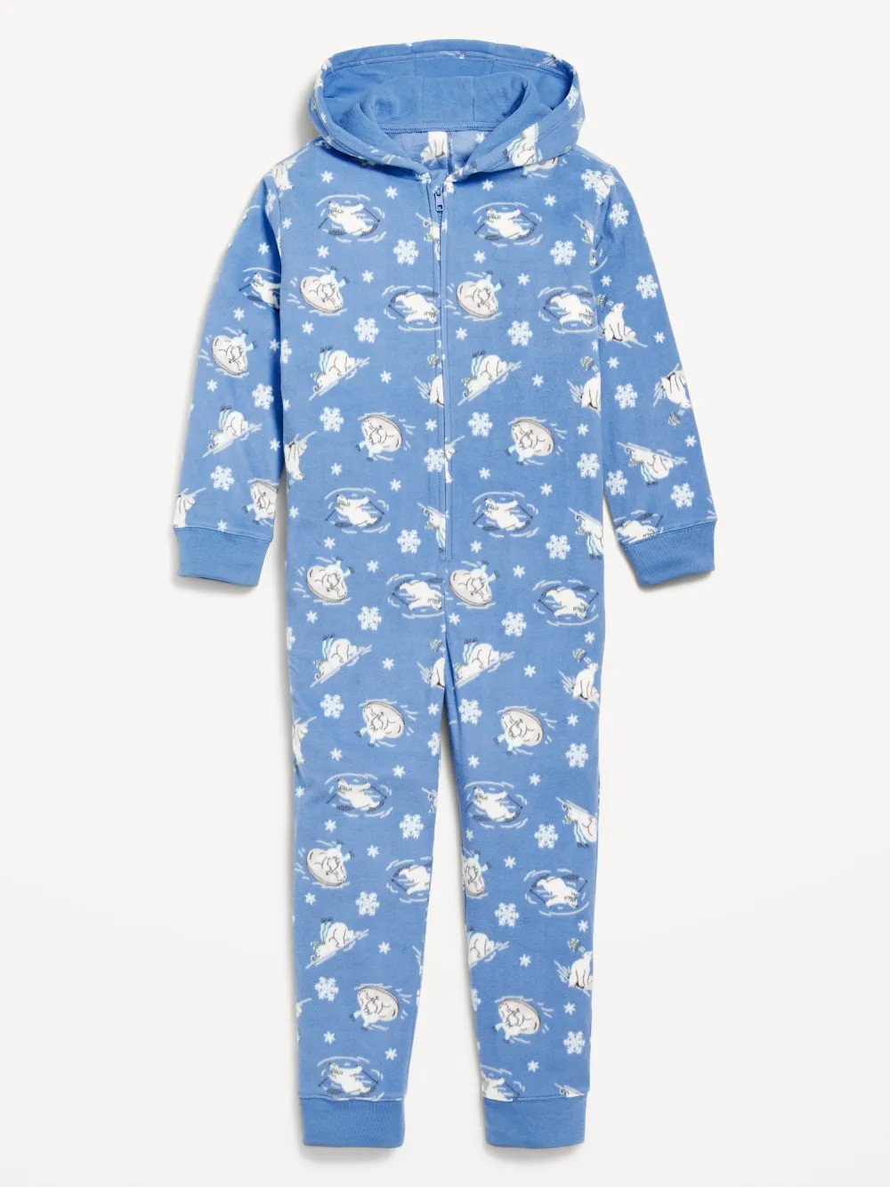 PRINTED GENDER-NEUTRAL MICROFLEECE HOODED ONE-PIECE PAJAMAS FOR KIDS