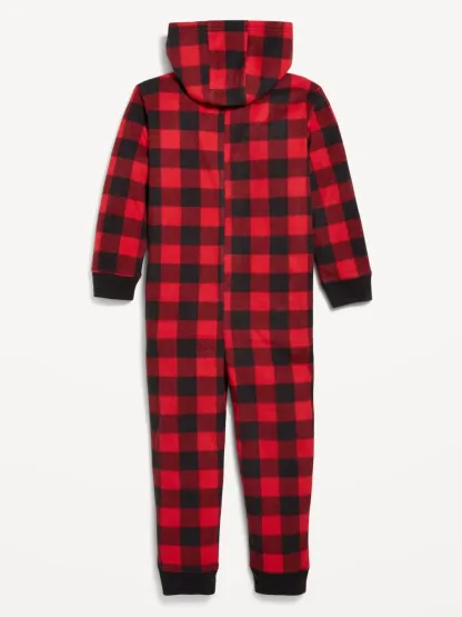 PRINTED GENDER-NEUTRAL MICROFLEECE HOODED ONE-PIECE PAJAMAS FOR KIDS