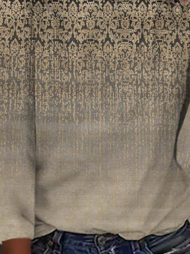 Plus size Printed Long Sleeve Casual T-Shirt