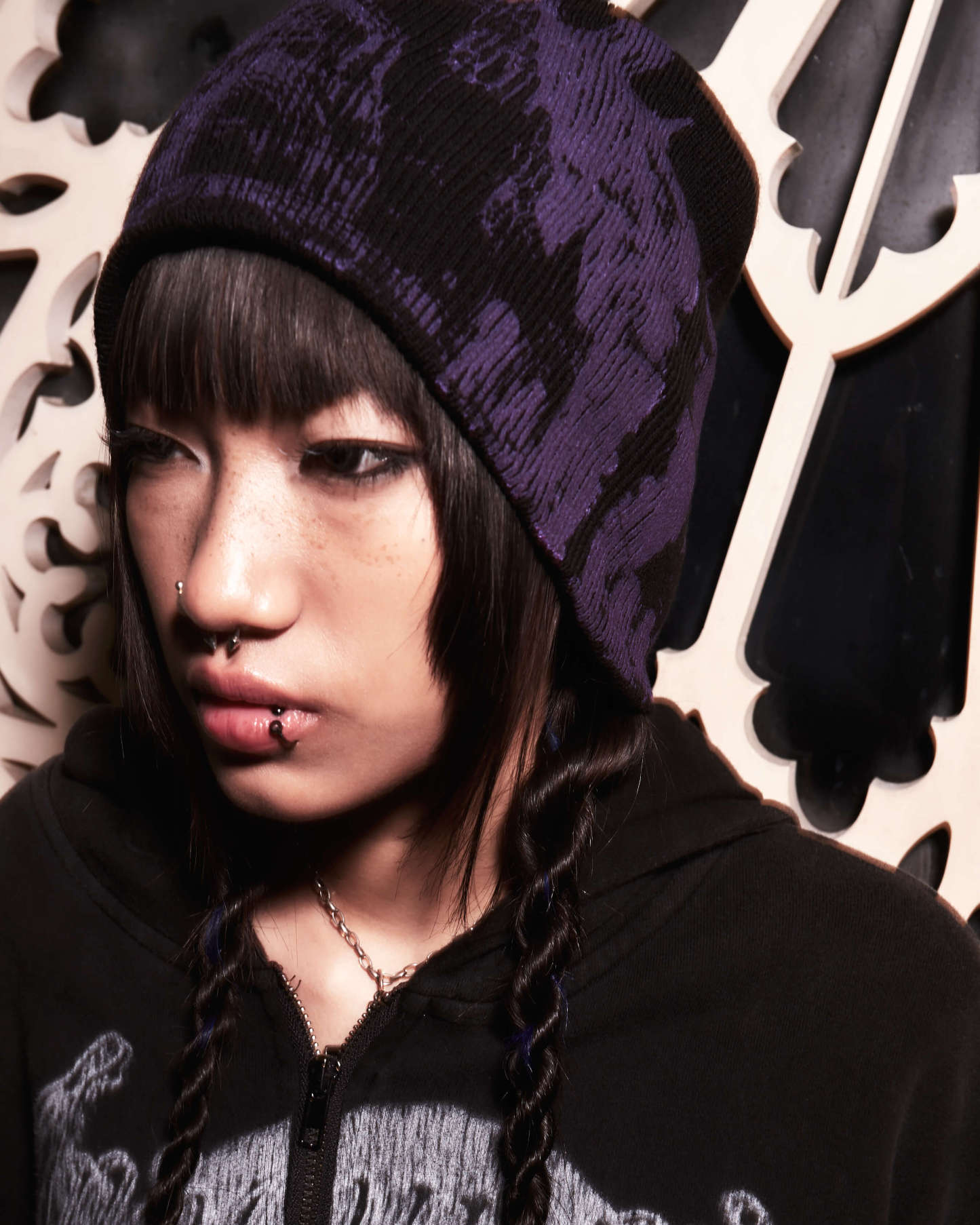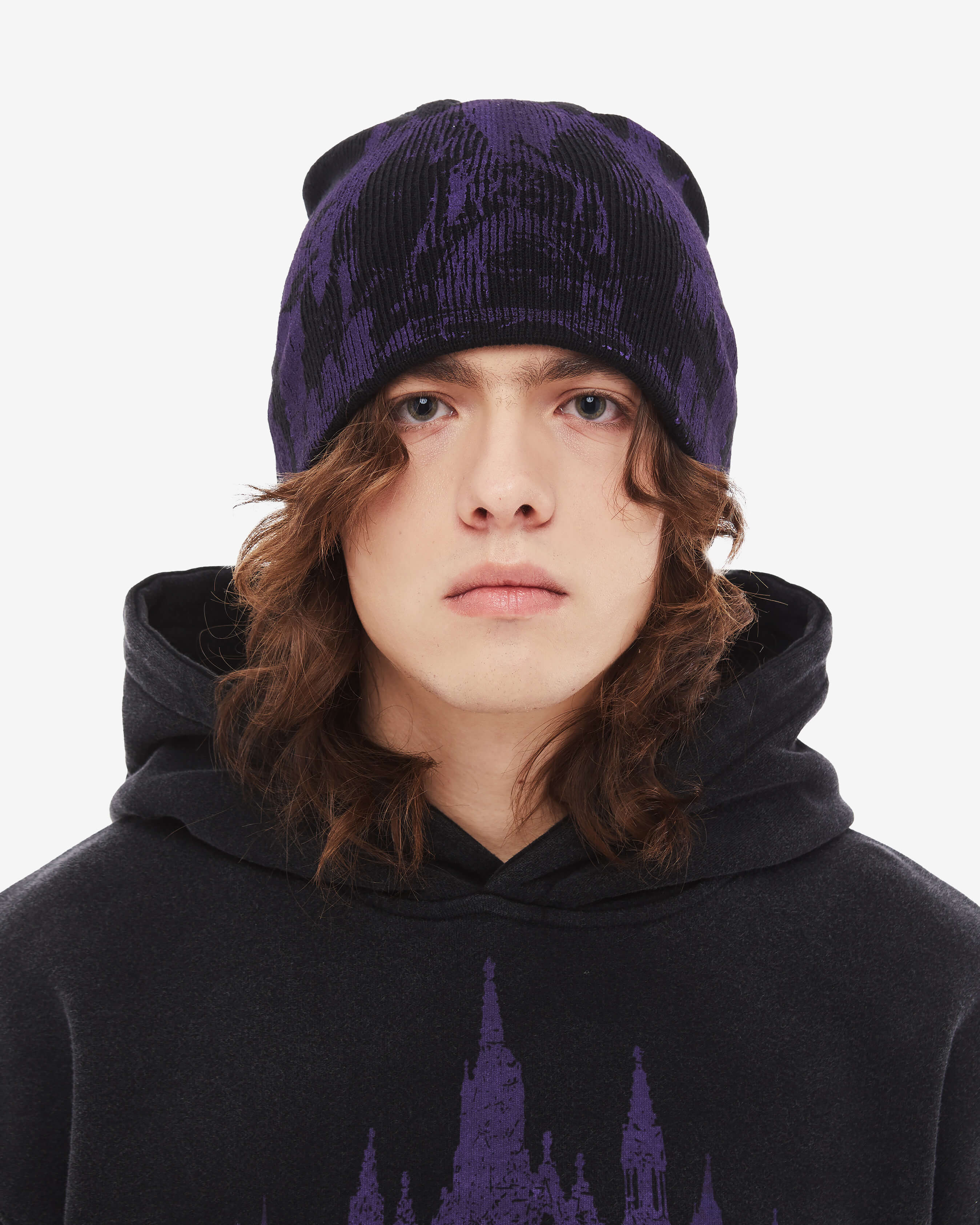 Presenting the Cathedral Beanie in purple.