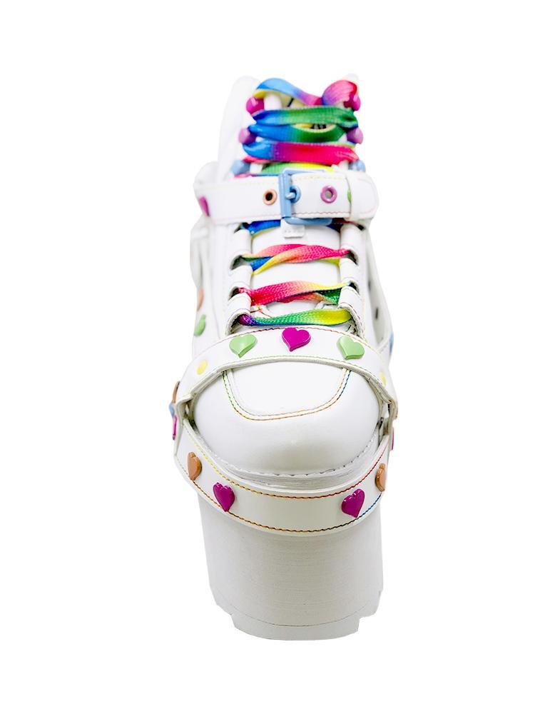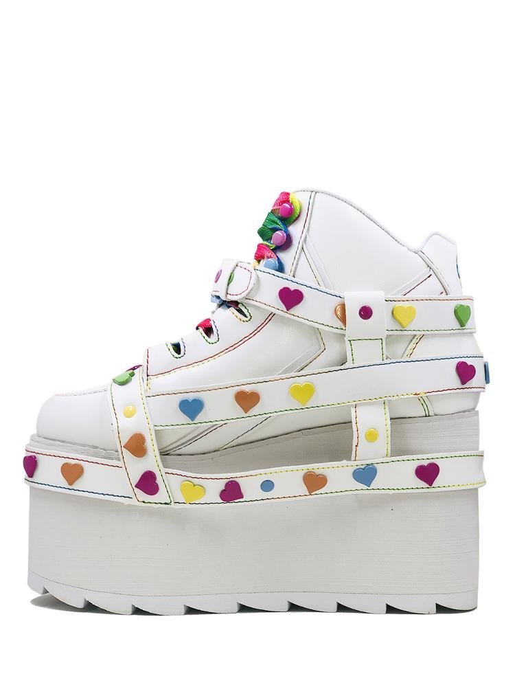 White faux-leather upper. White EVA platform sole