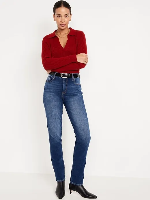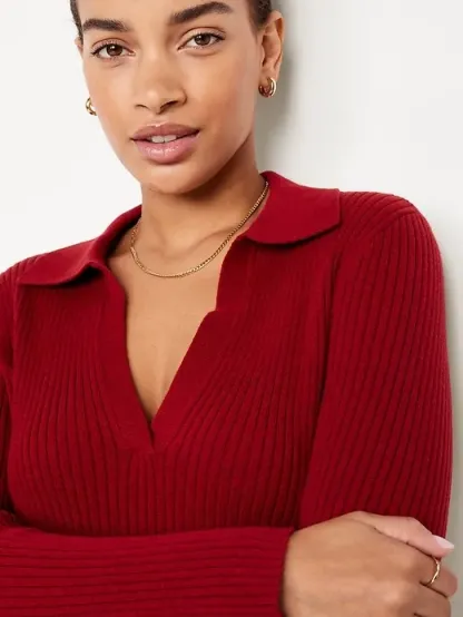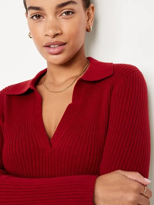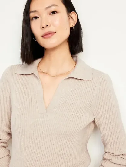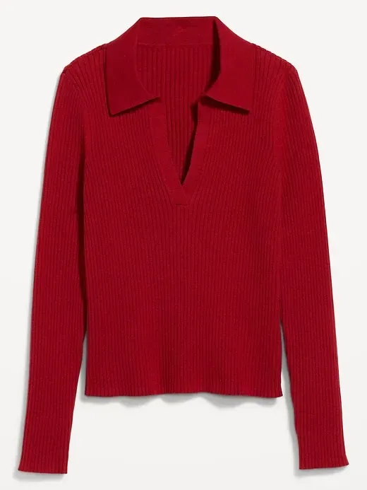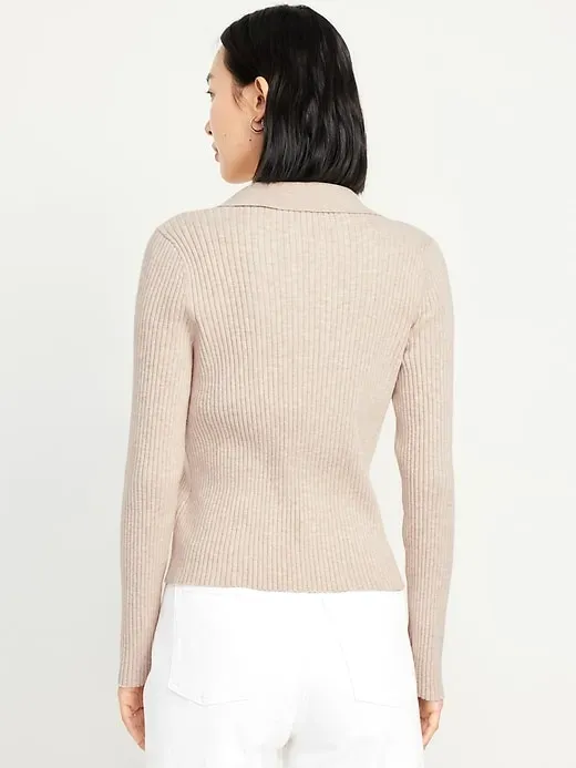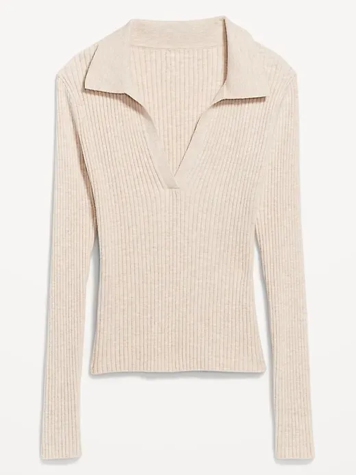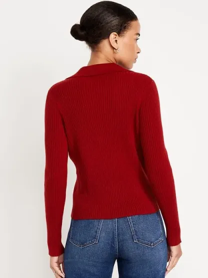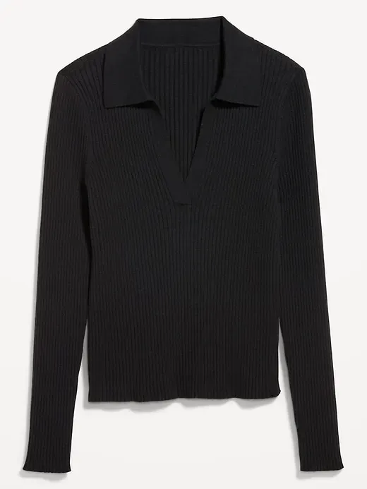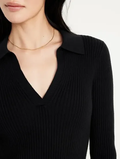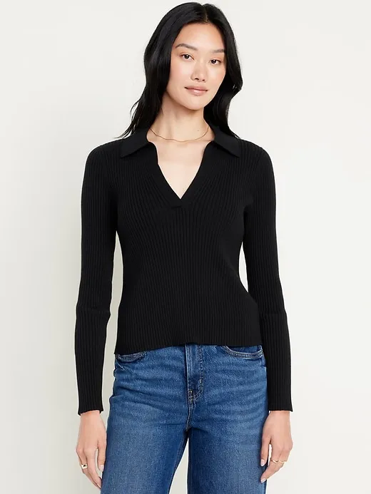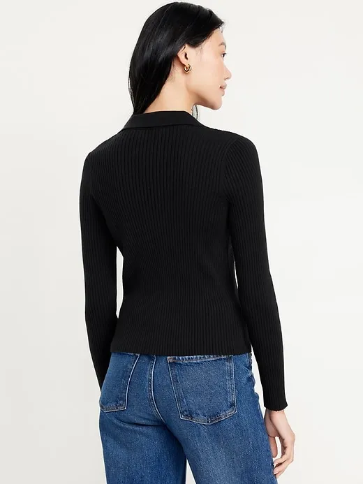 Ribbed Crop Polo Sweater