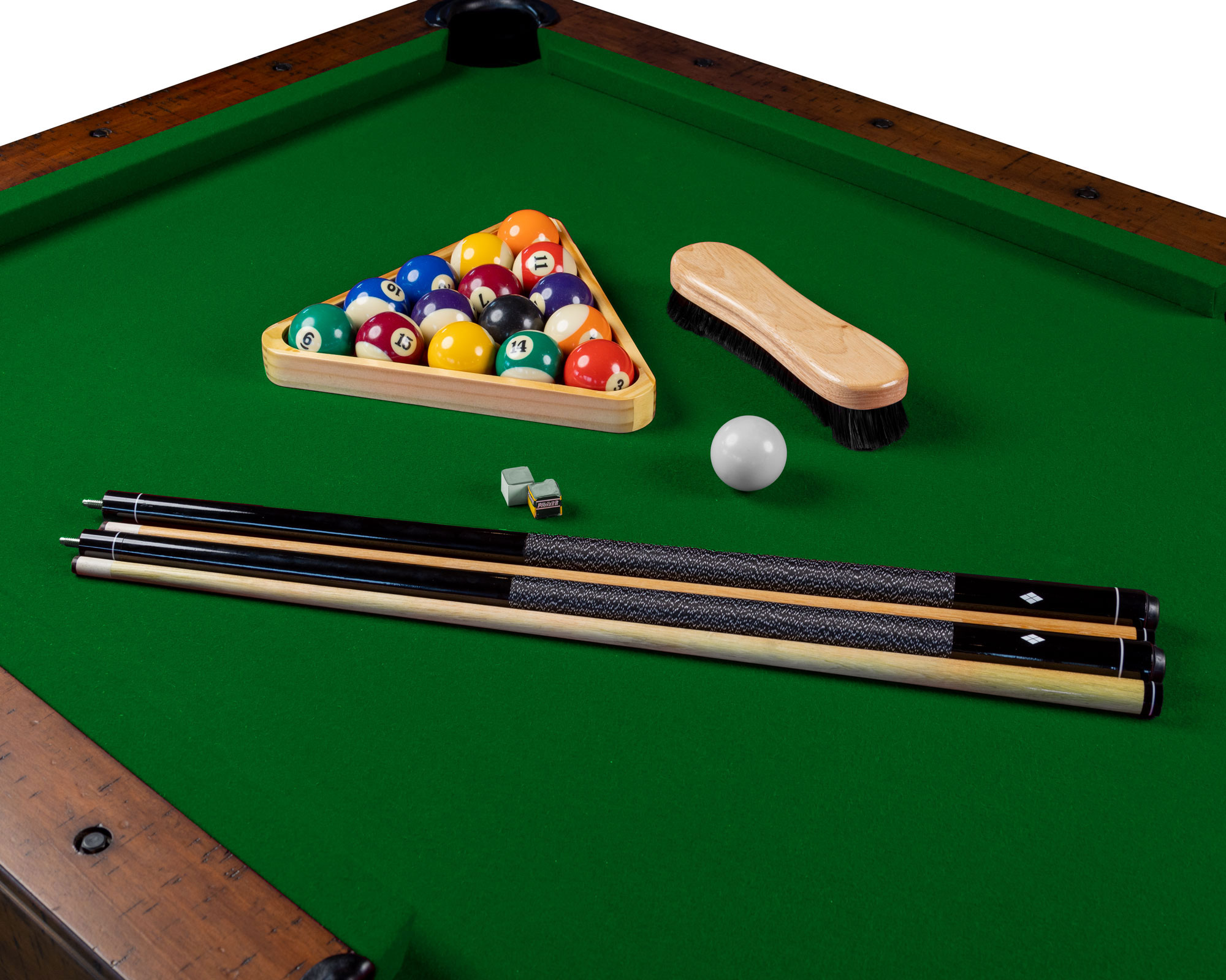 This artisan-inspired pool table comes with 1 set of billiard balls, two pool cues, chalk, ball rack, and table brush and best of all a low price that you can afford. This design inspired pool table is guaranteed to provide hours of family fun and excitement!