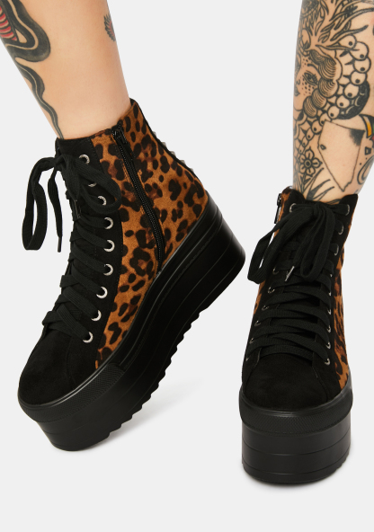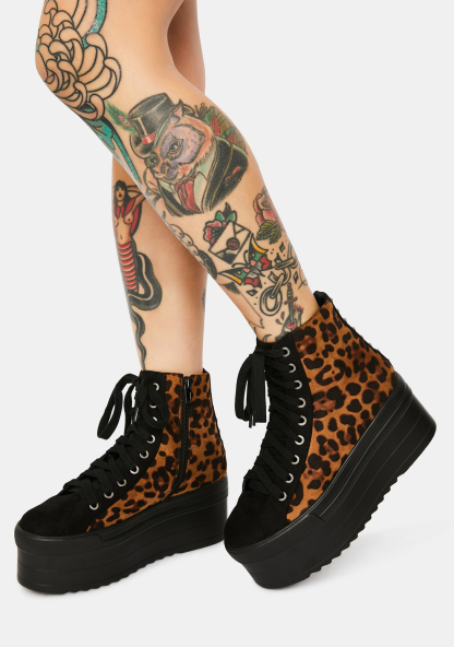 Sway This Way Leopard Flatform Sneakers cuz we’re gonna dance the night away! These sneakers feature a platform sole, leopard print upper, an inner ankle zip closure, a lace up front, and metallic studs up the heel.