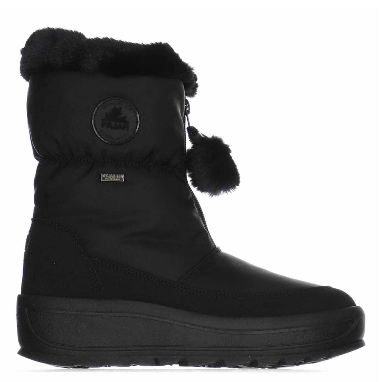 Get your gear on with Toby Nylon by Pajar Canada. A fuzzy fleece lining and memory-foam insole add to the cold-weather comfort of a chic yet utilitarian boot grounded with a traction-enhancing snow-grip sole. Features a 2-inch heel and 1-inch platform. The upper is entirely comprised of seam-sealed nylon and leather with a comfort rating of up to -30°C (-22°F) and features our weather proven Pajar-Tex waterproof membrane bootie to keep your feet snug all winter long with cozy wool blend lining. Our premium removable comfort molded insole features a cushy wool blend that is both breathable and anti-microbial.