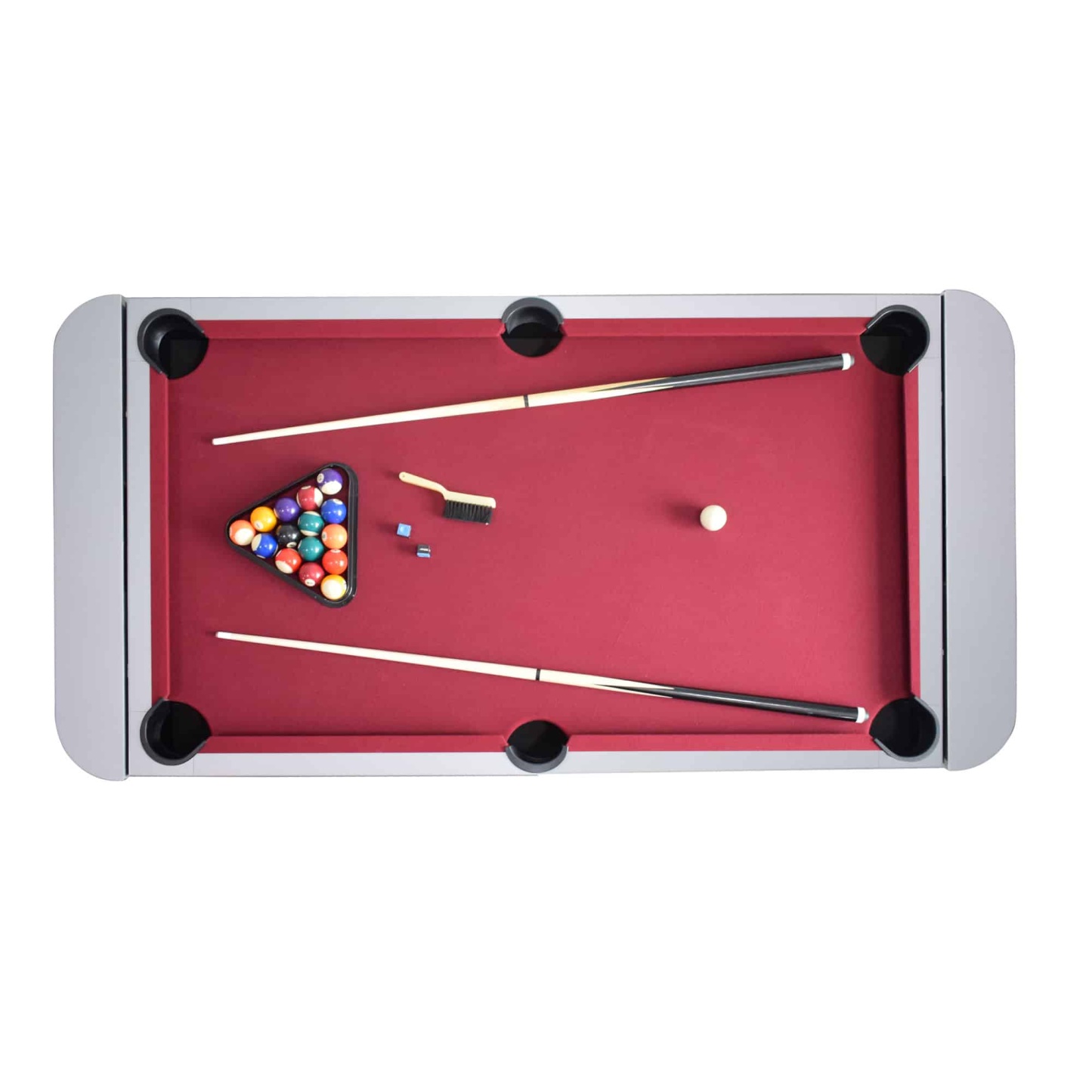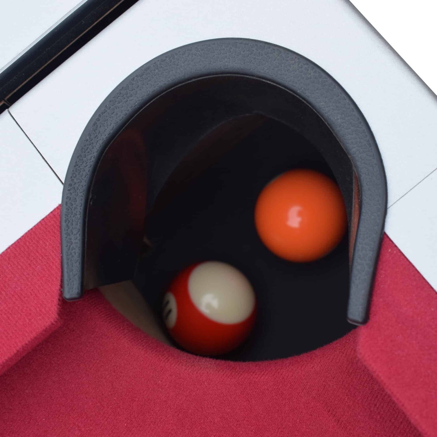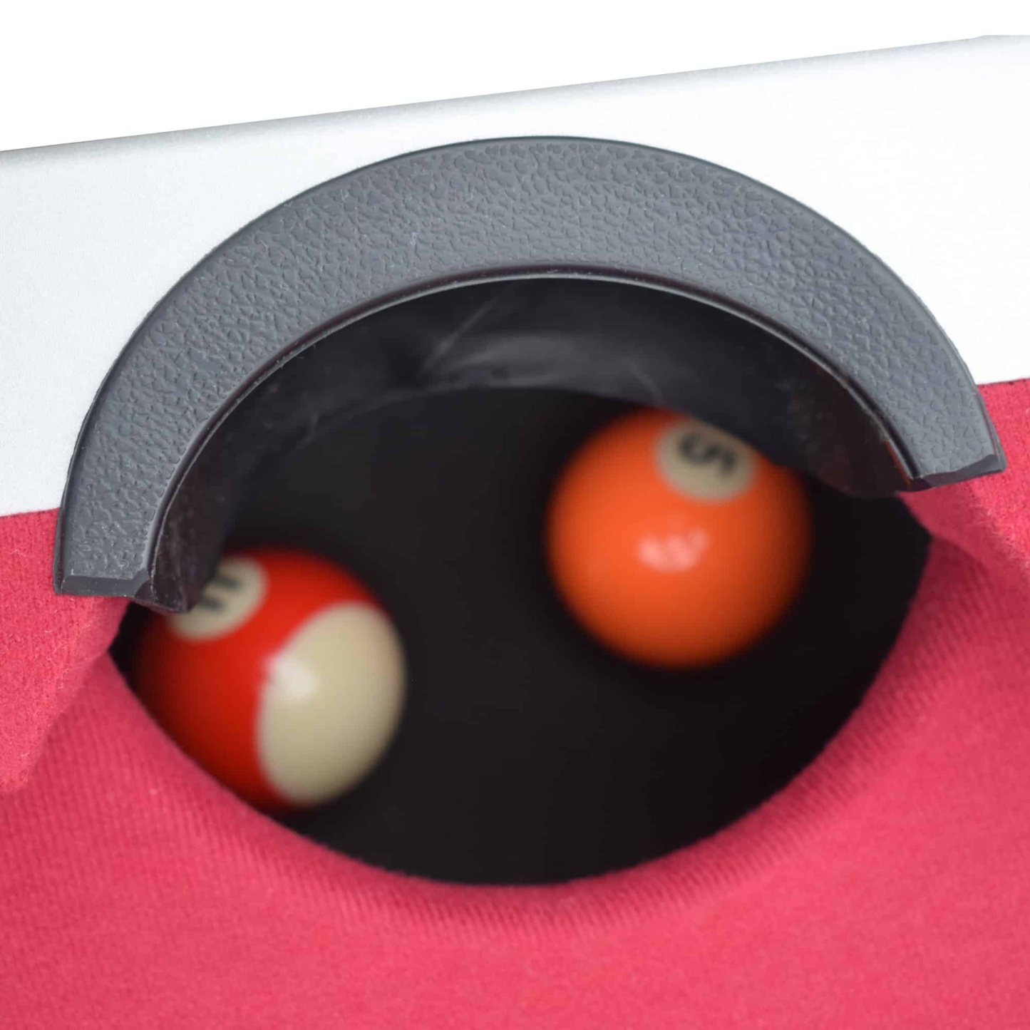 - QUIET PLAY – The pool table features rubber drop pockets and L-shaped gum rubber cushions to reduce the amount of noise produced during gameplay. Perfect for when you don’t want to wake sleeping family members.