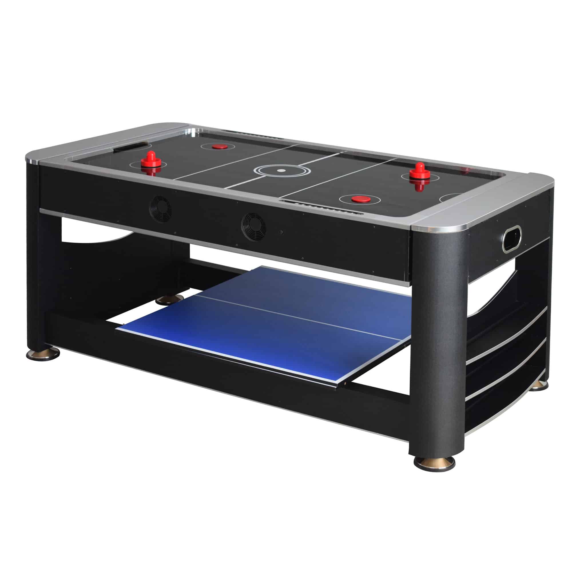 - EASY CONVERSION – Switching from billiards to air hockey is quick and easy. Simply rotate the table and lock into place. A removable, table tennis conversion top adds an additional layer of fun.
