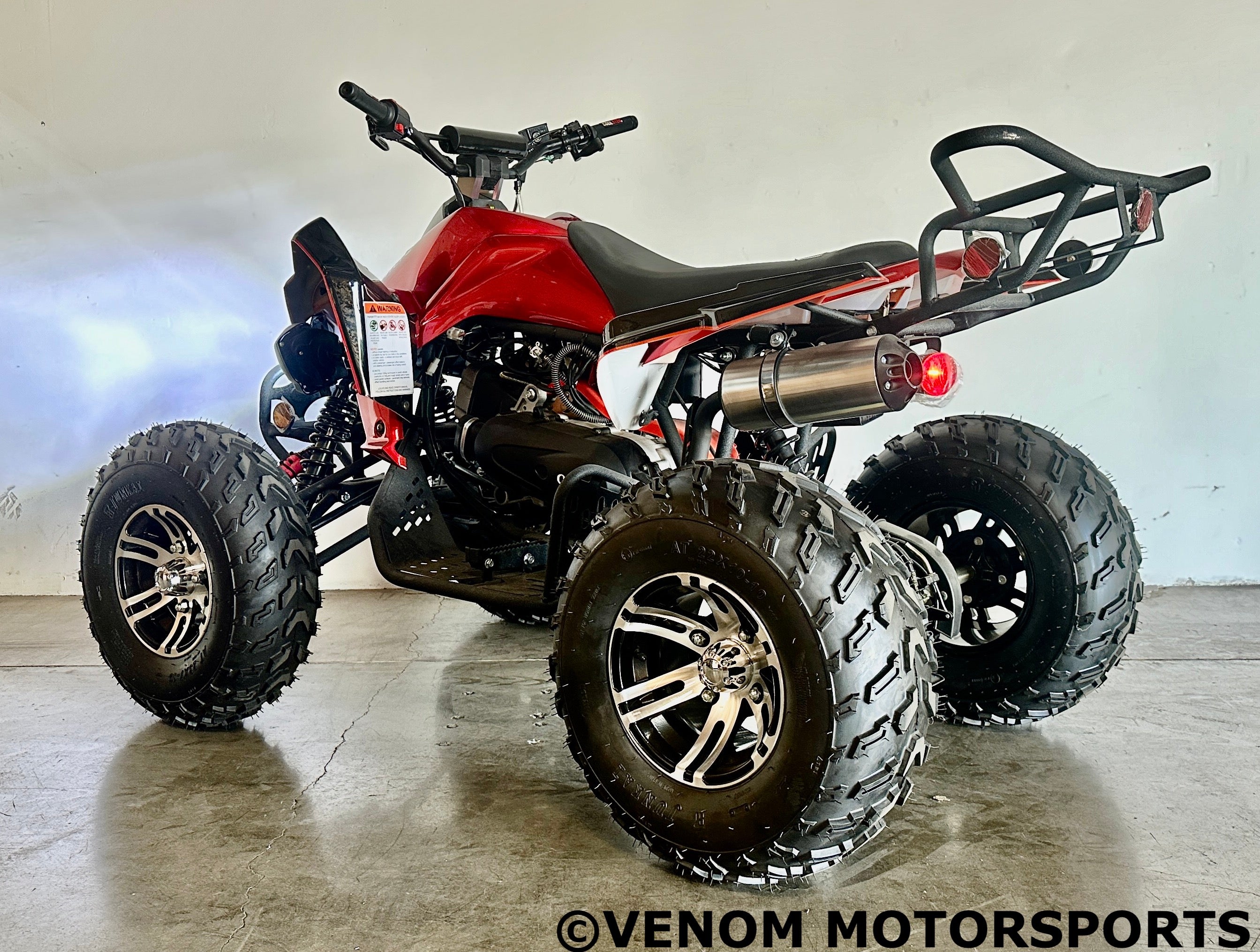 Experience the power and precision of Venoms brand-new 200cc Full-Size ATV. With an Automatic transmission and Reverse, noyhing stands between you and the ultimate ride. Stand out from the rest with a vehicle designed for speed, and take your riding to exciting new heights!