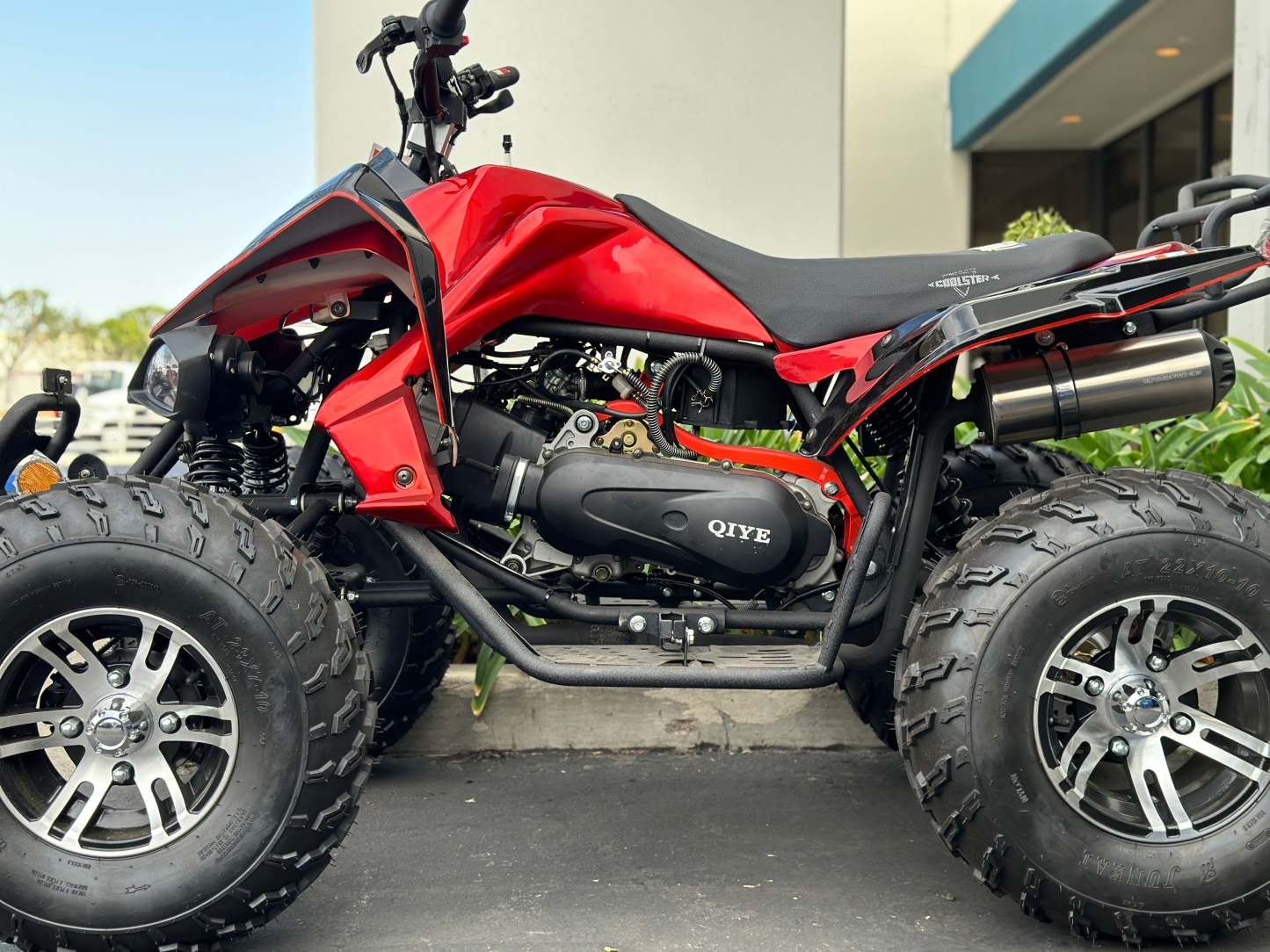 ARRIVES 80% ASSEMBLED. WILL NEED TO INSTALL 4 FRONT TIRES + SHOCKS, HANDLEBARS, CONNECT THE BATTERY, AND PERFORM PDI ON DELIVERY