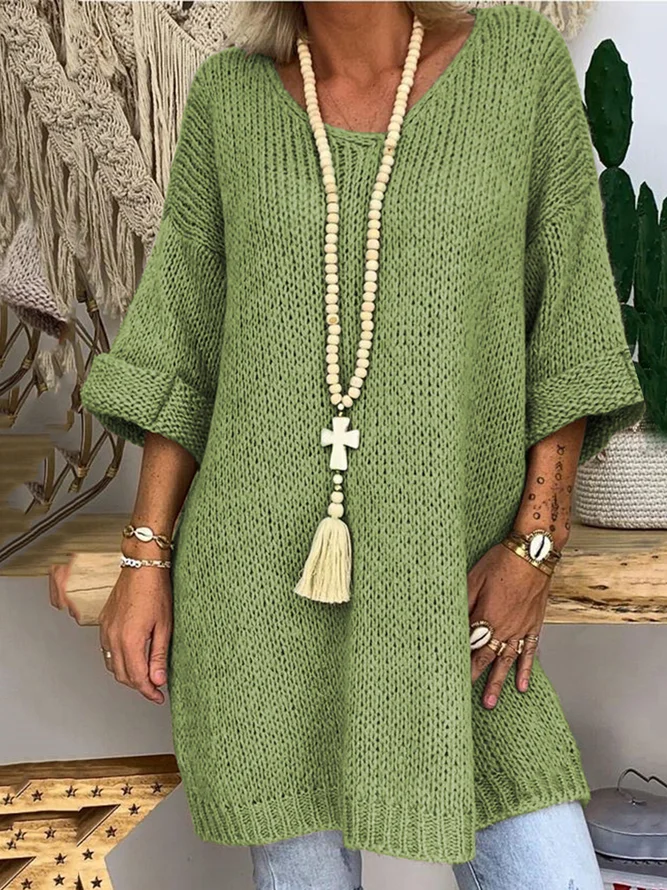 Women 3/4 Sleeves V-Neck Solid Knitted Sweaters