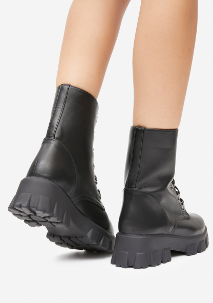 Worldwide Looks Combat Boots cuz you always step it out. These boots are laced up with a platform closure.