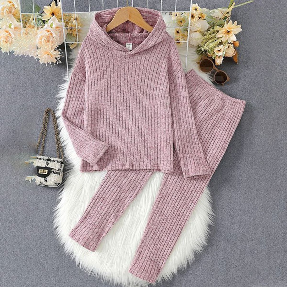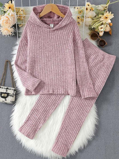 Pink Plain Hoodie Two Piece Set