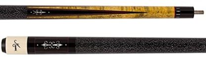 This Meucci pool cue with Black Dot Shaft emphasizes a consistent shot. The Birdseye Maple forearm is split by four black points with intricate pearl spear designs directed at your shot. The ebony butt sleeve has this same spear design enlarged and repeated within a pearl window border. This cue may be stylish, but it also has quality in its strike.The Black Dot Bulls-eye Shaft is the most consistent, hi tech, peak performing cue shaft that is flat-laminated from 35 Northern Hardrock Maple lamination's. Also, the unique joint and ferrule design allow for maximum performance with minimum effort. This is a great cue stick with a classy look.